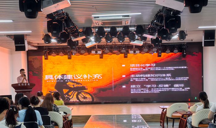 刘乃武以《低头寻找六便士 更需抬头看月亮》为题,结合自身职业转型经历,从三方面进行分享:一是痛点拆解,用“3个3”点出毕业生眼高手低、缺实战经验等问题,指出就业难核心是自身定位与行业需求脱节,提醒理性看待职业选择;二是路径破局,针对考公、考研、就业、创业给出建议,考公考研需先判断适配性再拆目标,就业要建“实践地图”,创业需先沉淀积累;三是校友荐才,介绍自家公司注重新人实用技能培养与内容创新,展示团队作品并发出职场邀约 。