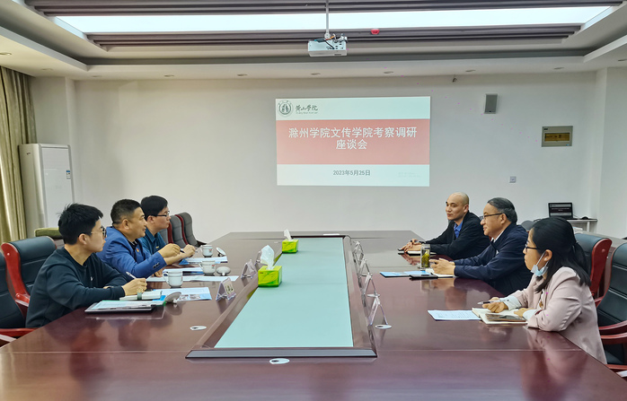 5月25日下午,滁州学院文学与传媒学院党委书记王诗根一行来永利官网考察调研,学院党政领导及专职组织员参加交流座谈会。