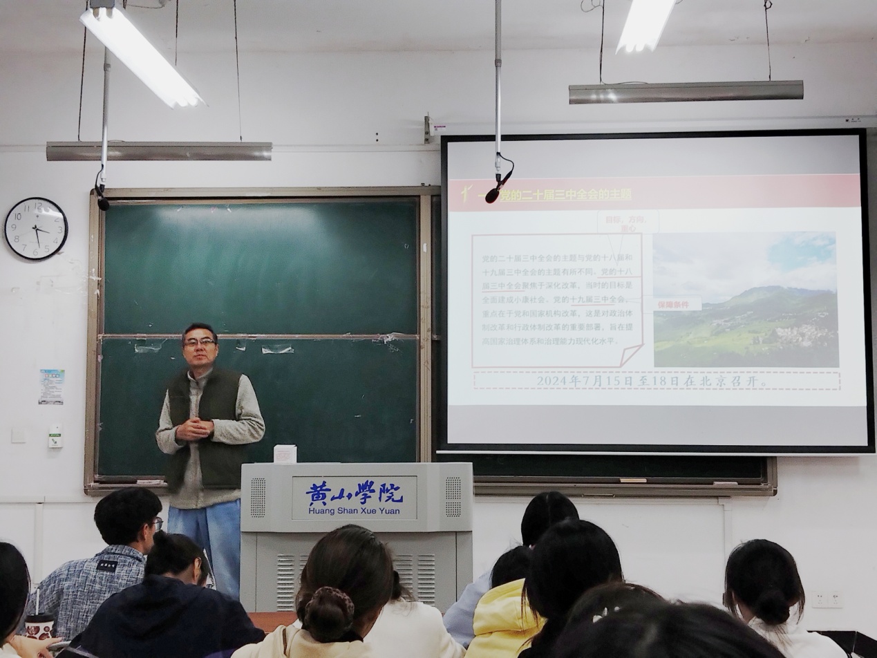 课上,王俊峰对比往届三中全会主题,阐明全会“围绕中国式现代化进一步全面深化改革”的主旨,深入解读了“高质量发展”“创新机制”等重点任务。通过“放开价格管制”与“构建全国统一大市场”、过往基础兜底与现今“完善社保、深化医改”的对比,详细解析改革与民生政策,并结合自身经历激励同学们投身现代化建设。