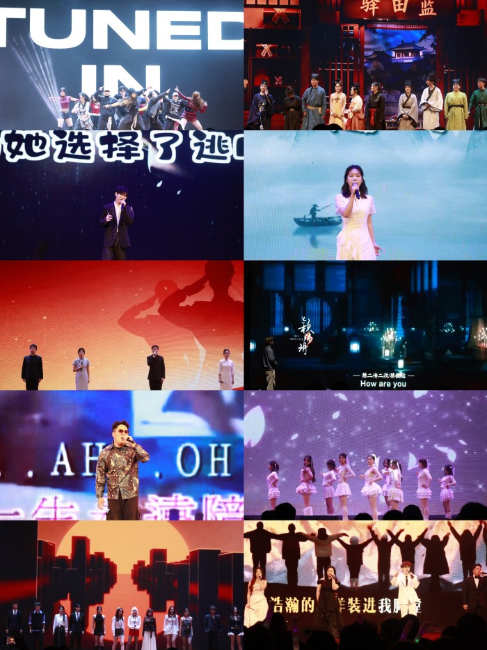 创意走秀《职场风云》别出心裁,参演学子身着各式职业装,将职场人的干练风采展现得淋漓尽致,新颖的表演形式赢得满堂喝彩。小品《最后一站》凭借幽默诙谐的台词和生动传神的演绎,频频戳中学子笑点,台下掌声与笑声交织不断。婉转悠扬的《苏州河》缓缓唱响,温柔的歌声漫过全场,让这份热烈又温馨的氛围久久萦绕。互动环节的到来,让晚会的参与感与趣味性再度升级。配音节目《生生不息》中,学子们用惟妙惟肖的声音演绎经典片段,展现出扎实的语言功底与创意巧思。随后,舞蹈《再次重逢的世界》以轻盈的舞姿传递出温暖与希望。晚会尾声,小合唱《奔跑》以昂扬的旋律点燃全场热血,歌声里满是青春的热忱与对未来的憧憬,为这场青春盛会画上圆满的句号。