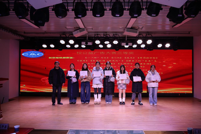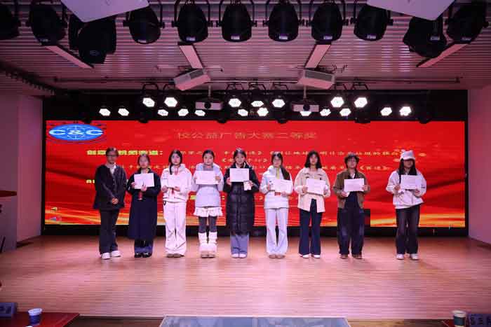 创意短视频赛道《选择》《“借”来的五分钟》《不能说的秘密》《耳朵的温度》《消失的午餐》《净水爱民生,健康暖新村》《爱不“负”价》《反诈宣传》,AIGC赛道《保护环境》《青春践初心,微光暖方寸》《十年青山——绘就生态长卷》等11部作品获永利集团3044官网欢迎您第六届公益广告大赛优秀奖。永利集团3044官网欢迎您播音与主持艺术专业专任教师赵明丽为获奖同学颁奖。