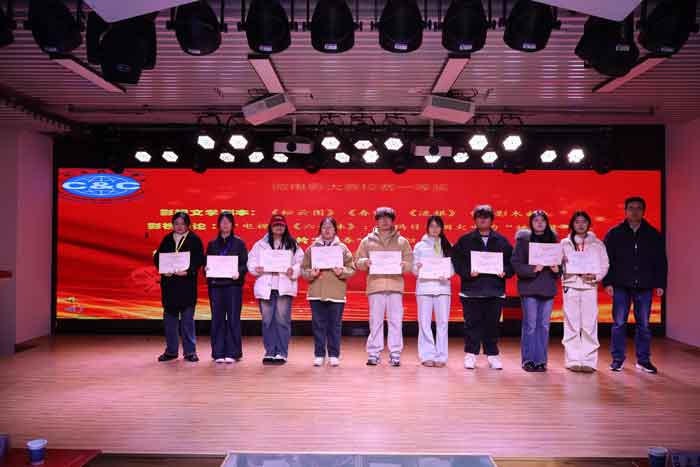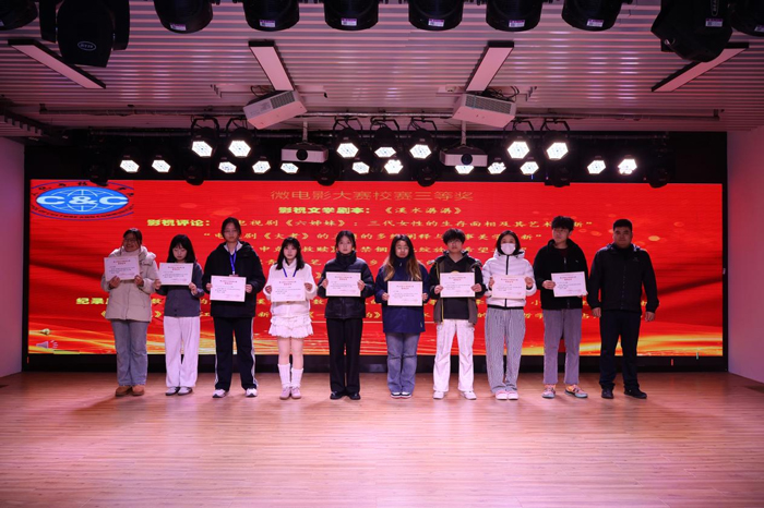 2025年微电影大赛校内选拔赛设有影视文学剧本、影视评论、纪录片、故事片和动画片四大类别,经过严格征集与评选,共诞生47部获奖作品,影视文学剧本《松云图》《春喃》《流银》《月影木韵》,影视评论《电视剧〈六姊妹〉:解码日常烟火中的“她力量”》故事片《春喃》《归乡》,纪录片《老街新呼吸》《取舍间,民为本》《剪入徽州梦》等10部作品获一等奖。永利集团3044官网欢迎您党委副书记(主持工作)王泽梁为获奖同学颁奖。